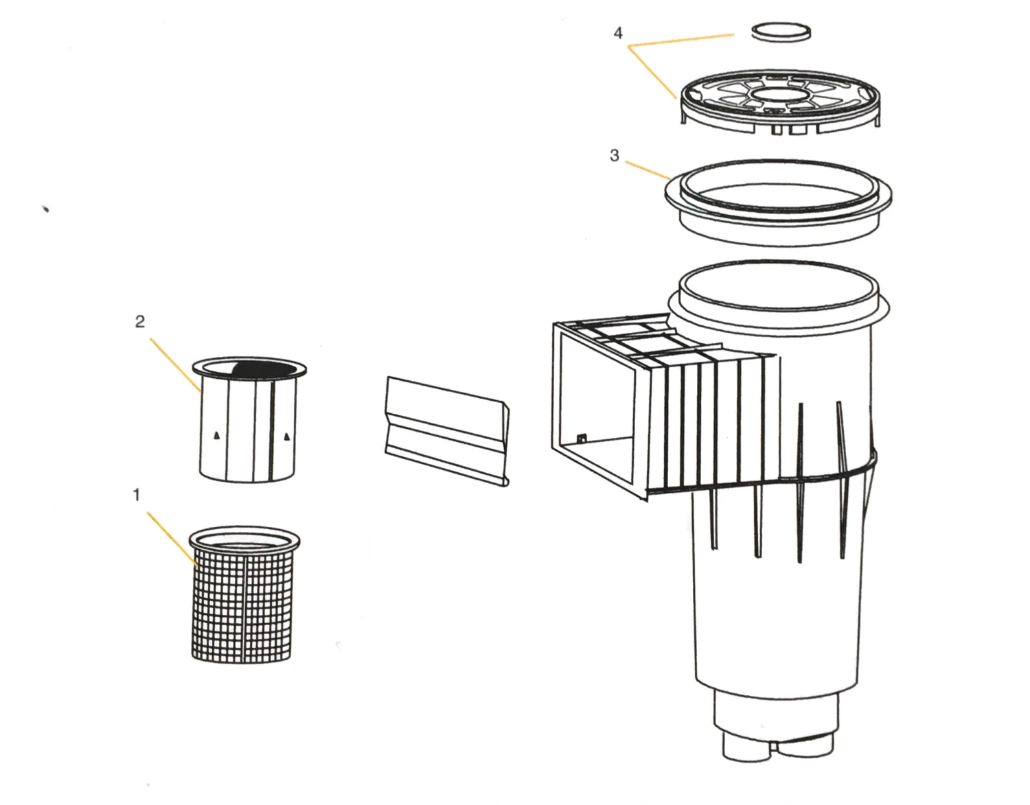 | Options | 1. Basket (180mm), 2. Floating Weir (150mm), 3. Lid Ring, 4. Lid (235mm), Vac Plate (205mm) |