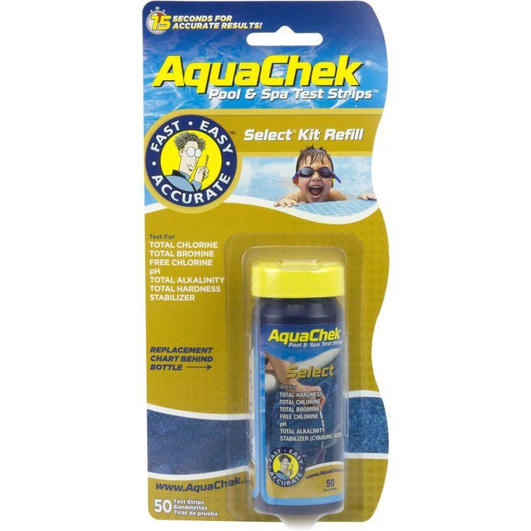 50 Strips per pack. Test for Total Chlorine, Total Bromine, Free Chlorine, Total Hardness, pH, Total Alkalinity & Cyanuric Acid.