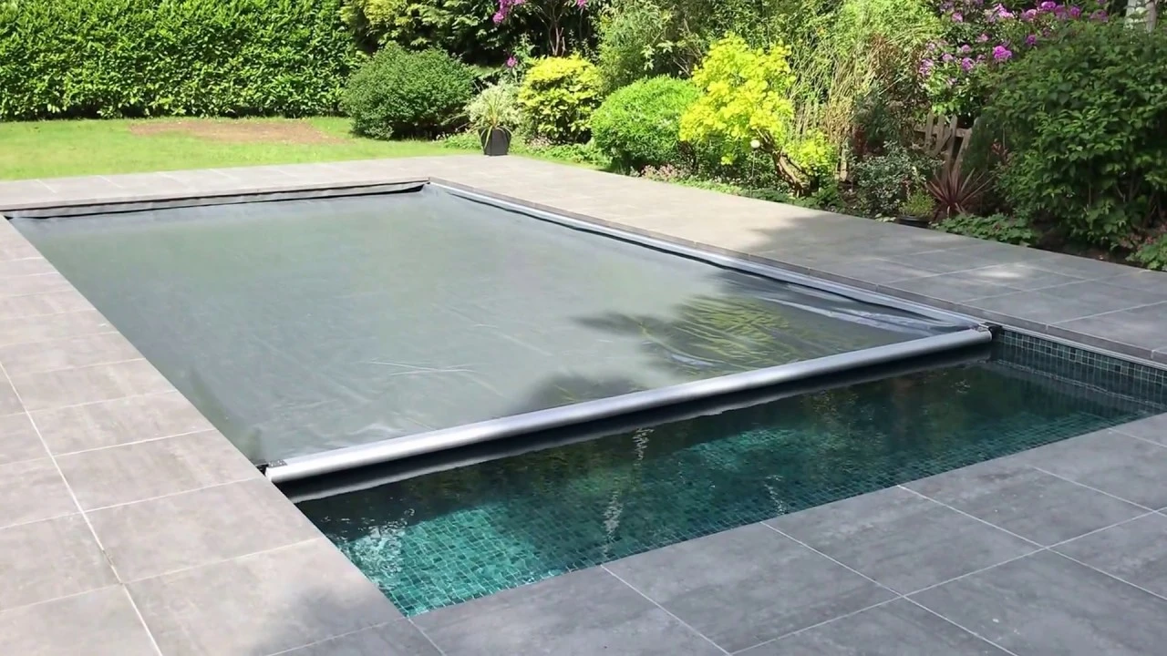 A PVC reinforced fabric is attached to an aluminium leading edge bar that spans the width of the pool. A unique Slider mechanism is attached to the leading edge and this slides through aluminium tracking placed either side of the pool.