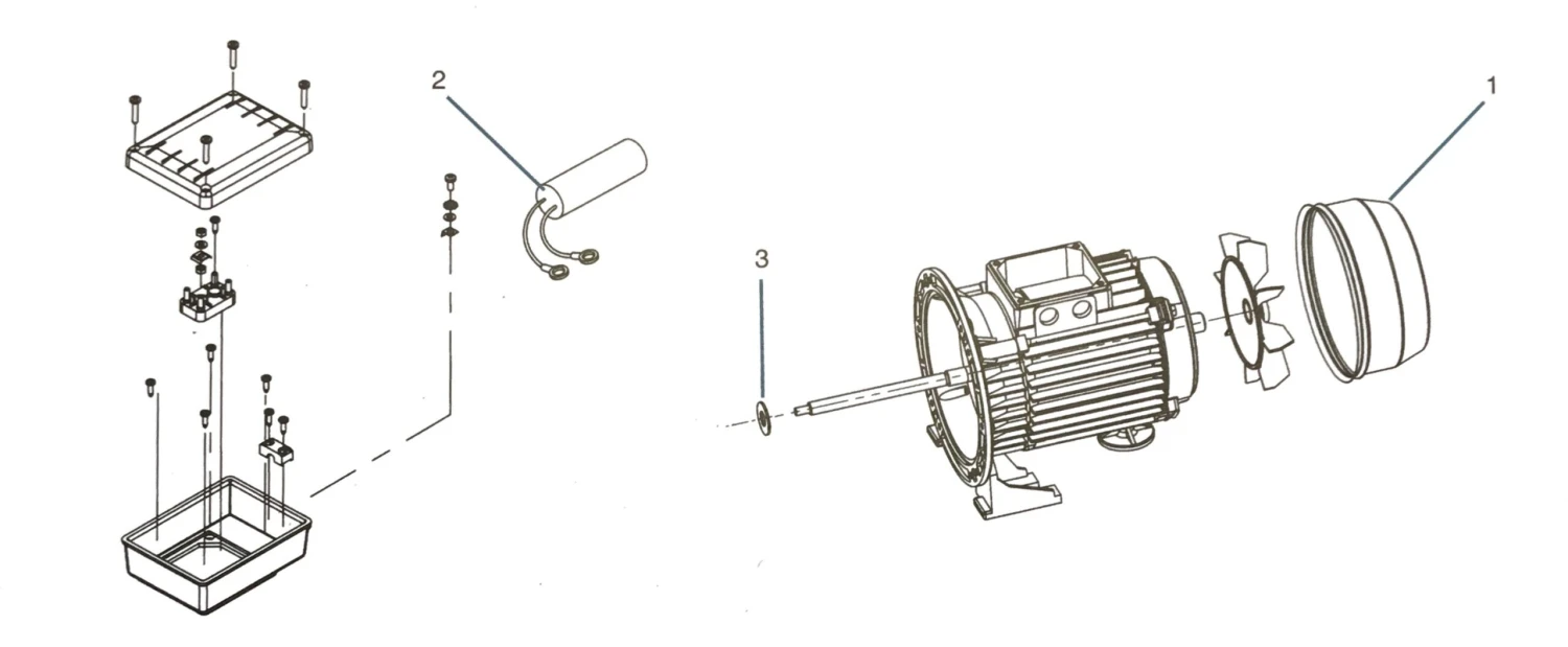 | Options | 1. Fan Cover S4P100M, S4P100T, 1. Fan Cover S5P150M, S5P150T, 2. Capacitor 12µF S4P100M 450V, 2. Capacitor 20µFS5P150M 450V, 3. Water Slinger |