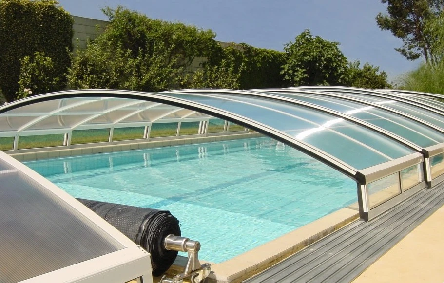 The Imperia Neo Light telescopic swimming pool enclosure is a stunning structure that will fit perfectly into your garden. You can freely and easily swim in the pool if the cover is closed. The Imperia Enclosure is a combination of sharp and rounded-off shapes (arch and vertical sides).