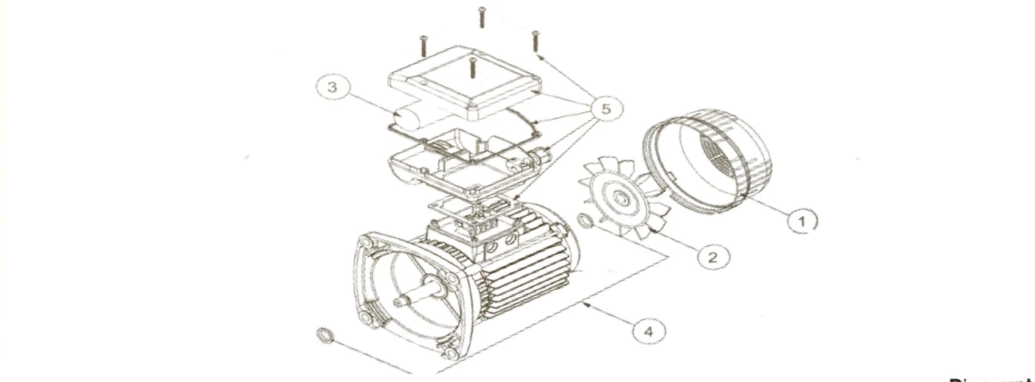 | Options | 1. Fan Cover 0.3kW – 0.75kW, 1. Fan Cover 1.10kW – 2.20kW, 2. Motor Fan 0.37kW – 0.75kW, 2. Motor Fan 1.10kW – 2.20kW, 3. Capacitor 12µF 0.37kW (motor with lead wire), 3. Capacitor 16µF 0.55kW (motor with lead wire), 3. Capacitor 20µF 0.75kW (motor with lead wire), 3. Capacitor 31.5µF 1.10kW (motor with lead wire), 3. Capacitor 35µF 1.50kW & 2.20kW (motor with lead wire), 3. Capacitor 12µF 0.37kW (motor with fastons), 3. Capacitor 16µF 0.55kW (motor with fastons), 3. Capacitor 20µF 0.75kW (motor with fastons), 3. Capacitor 31.5µF 1.10kW (motor with fastons), 3. Capacitor 35µF 1.50kW & 2.20kW (motor with fastons) |