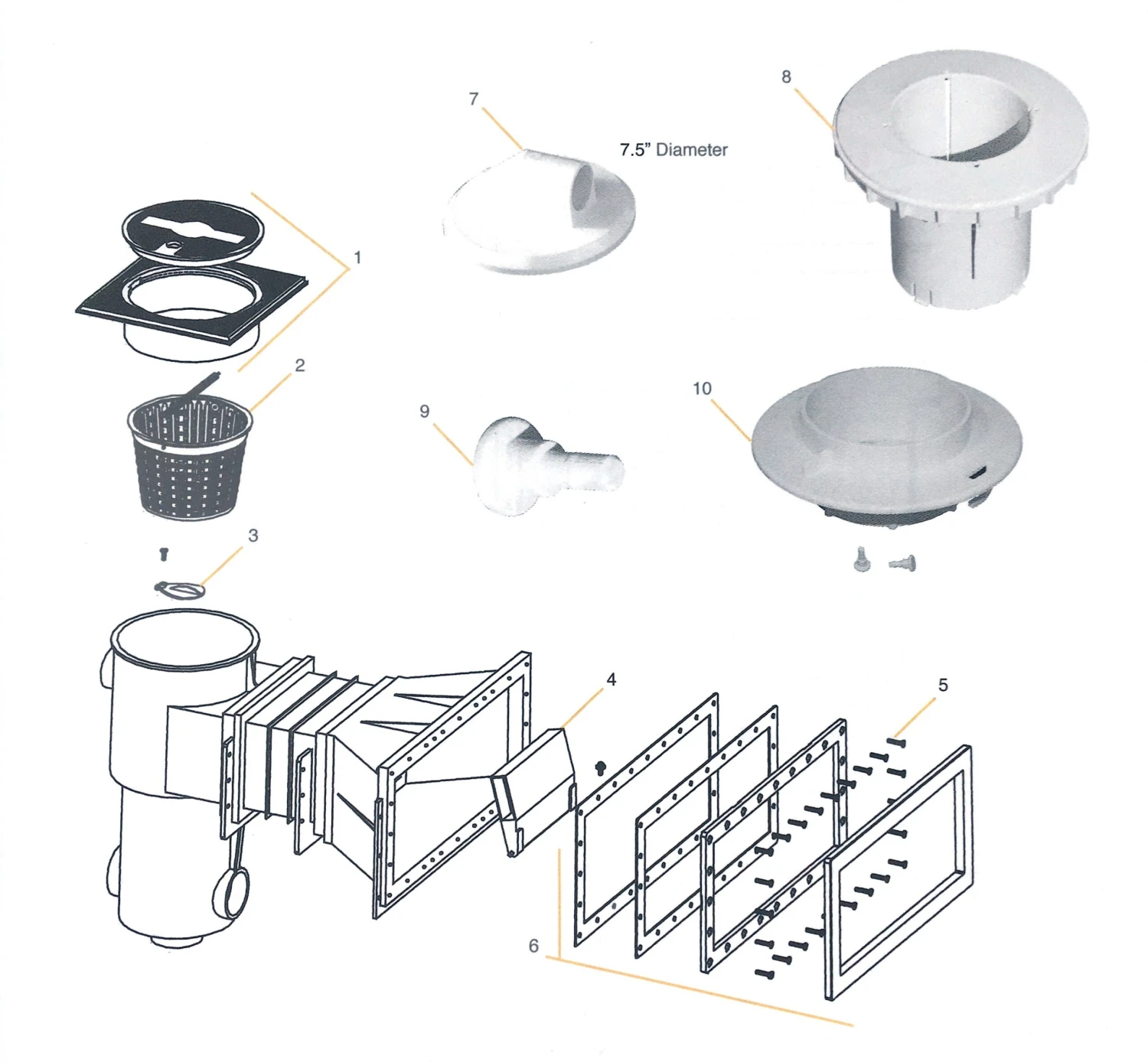 Skimmer, Main Drain, Deck Box & Inlet Parts