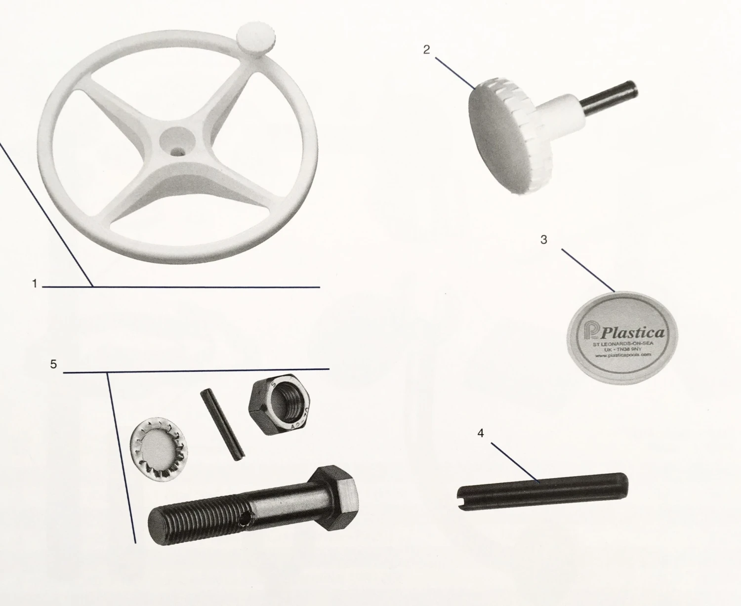 | Options | 1. Reel Easy Steering Wheel Complete, 5. Bolt Assembly, 4. Roll Pin – Pack of 5, 2. Crank Handle, 3. Cap w/Label, M8 Flat Washers (pack of 10), Star-lock Fastener 8mm, Small Outer Tube 1.838m (6ft), Large Outer Tube 2.438m (8ft), Small Inner Tube 2.438m (8ft), Large Inner Tube 3.048m (10ft), Large Tube Assembly, Small Tube Assembly |